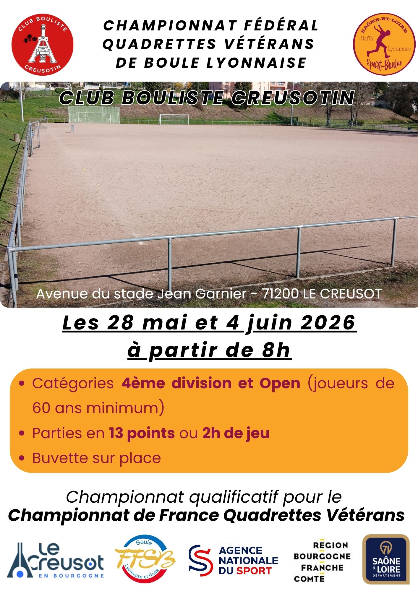 CHATENOY-LE-ROYALOuvert à tous Les 12 gagnants de la 1°partie : CHALLENGE PIERRE PETITJEAN Les 12 perdants CHALLENGE ANDRE HUMBERT Puis les DEUX GROUPES en SYSTEME AURARD Inscription : 15 € par […]
