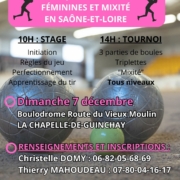 Le Comité Sportif Bouliste 71, pour la seconde fois de la saison, organise une animation « Journée Féminines et Mixité » qui s’adresse à tout le monde : joueuses, joueurs, débutants et confirmés.